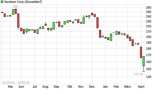 Mit dem Rücksetzer auf 148,80 EUR hat die Nordson-Aktie (ISIN US6556631025) am 09.04.2025 ein neues 3-Jahres-Tief erreicht und damit den Kurs vom 07.04.2025 eingestellt.