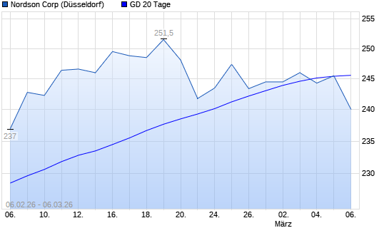 Mit dem Anstieg auf 246,50 EUR hat die Nordson-Aktie am 05.03.2026 die 20-Tage-Linie nach oben gekreuzt.
