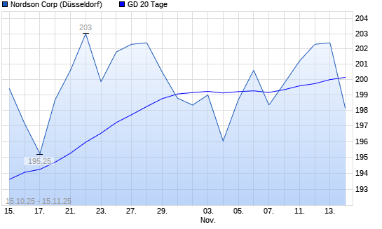 Mit dem Rücksetzer auf 198,80 EUR hat die Nordson-Aktie am 14.11.2025 die 20-Tage-Linie nach unten gekreuzt.
