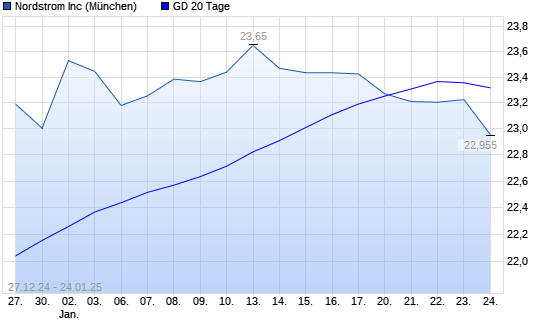 Mit dem Rücksetzer auf 23,24 EUR hat die Nordstrom-Aktie am 23.01.2025 die 20-Tage-Linie nach unten gekreuzt.