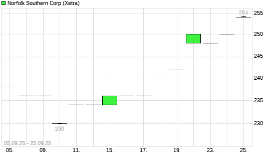 Mit dem Anstieg auf 248,00 EUR hat die Norfolk Southern-Aktie (ISIN US6558441084) am 24.09.2025 ein neues 6-Monats-Hoch erreicht und damit den Kurs vom 23.09.2025 eingestellt.
