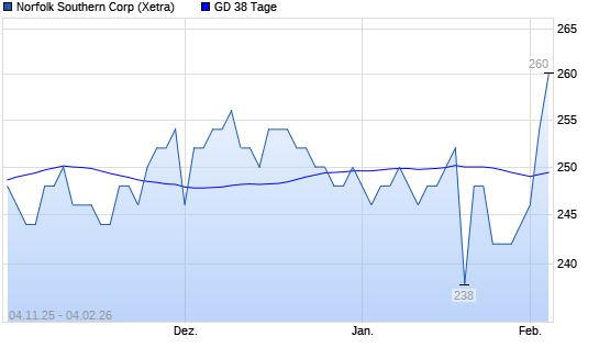 Mit dem Rücksetzer auf 242,00 EUR hat die Norfolk Southern-Aktie am 03.02.2026 die 38-Tage-Linie nach unten gekreuzt.
