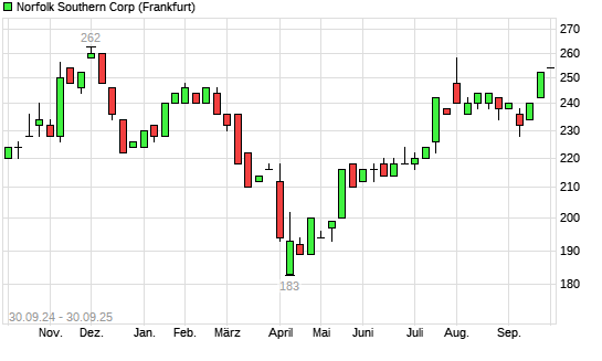 Mit dem Anstieg auf 254,00 EUR hat die Norfolk Southern-Aktie (ISIN US6558441084) am 29.09.2025 ein neues 6-Monats-Hoch erreicht und damit den Kurs vom 26.09.2025 eingestellt.Die Norfolk Southern-Aktie ...weiterlesen
