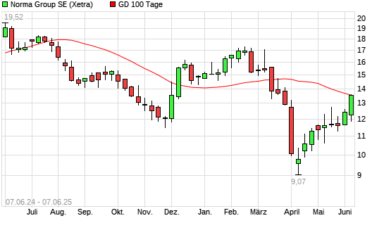 Mit dem Anstieg auf 13,50 EUR hat die Norma Group-Aktie am 06.06.2025 die 100-Tage-Linie nach oben gekreuzt.
