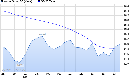 Mit dem Anstieg auf 14,86 EUR hat die Norma Group-Aktie am 24.10.2025 die 20-Tage-Linie nach oben gekreuzt.