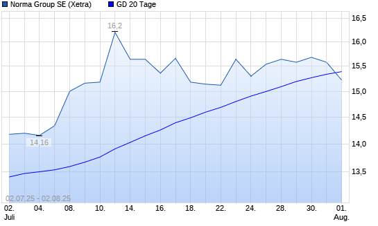 Mit dem Rücksetzer auf 15,30 EUR hat die Norma Group-Aktie am 01.08.2025 die 20-Tage-Linie nach unten gekreuzt.