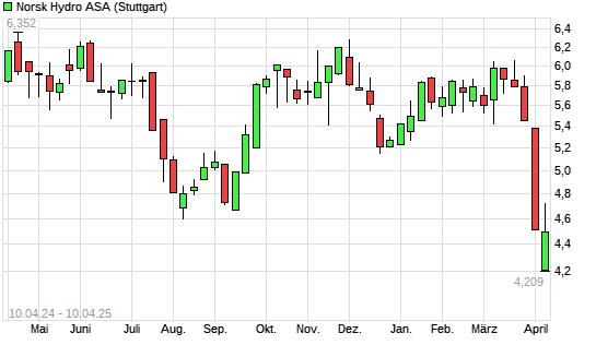 Mit dem Rücksetzer auf 4,26 EUR hat die Norsk Hydro-Aktie (ISIN NO0005052605) am 09.04.2025 ein neues 3-Jahres-Tief erreicht und damit den Kurs vom 07.04.2025 eingestellt.