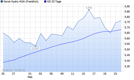 Mit dem Anstieg auf 5,75 EUR hat die Norsk Hydro-Aktie am 23.09.2025 die 20-Tage-Linie nach oben gekreuzt.