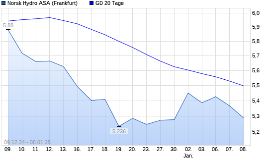 Mit dem Rücksetzer auf 5,37 EUR hat die Norsk Hydro-Aktie am 07.01.2025 die 20-Tage-Linie nach unten gekreuzt.