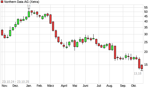 Mit dem Rücksetzer auf 13,49 EUR hat die Northern Data-Aktie (ISIN DE000A0SMU87) am 22.10.2025 ein neues 12-Monats-Tief erreicht und damit den Kurs vom 21.10.2025 eingestellt.