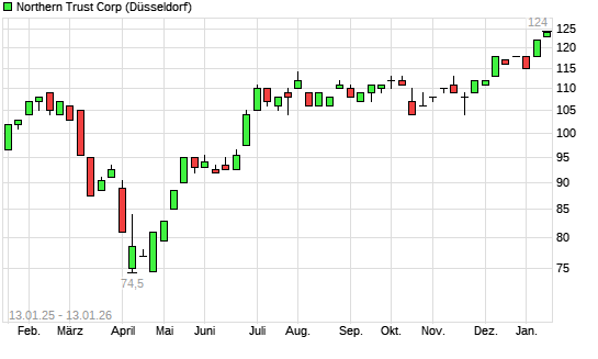 Mit dem Anstieg auf 124,00 EUR hat die Northern Trust-Aktie (ISIN US6658591044) am 12.01.2026 ein neues All-Time-High erreicht und damit den Kurs vom 09.01.2026 eingestellt.