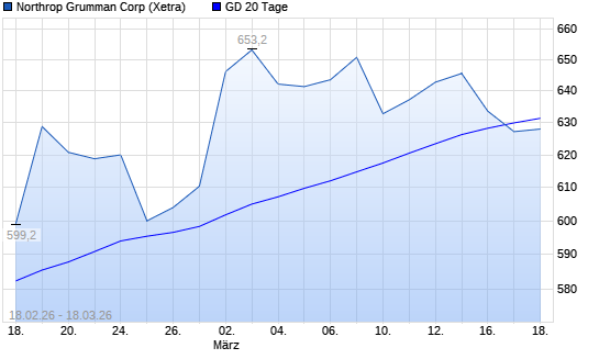 Mit dem Rücksetzer auf 629,60 EUR hat die Northrop Grumman-Aktie am 17.03.2026 die 20-Tage-Linie nach unten gekreuzt.
