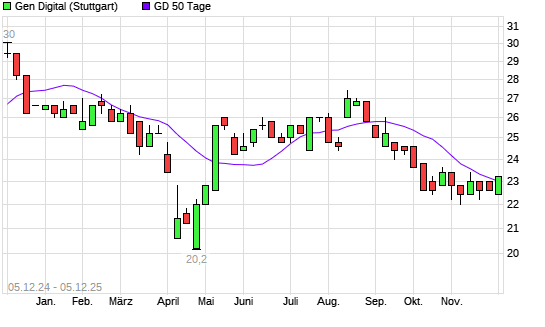 Mit dem Anstieg auf 23,20 EUR hat die NortonLifeLock-Aktie am 04.12.2025 die 50-Tage-Linie nach oben gekreuzt.