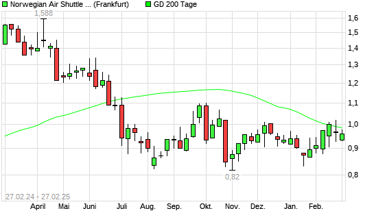 Mit dem Anstieg auf 0,98 EUR hat die Norwegian Air Shuttle ASA-Aktie am 26.02.2025 die 200-Tage-Linie nach oben gekreuzt.