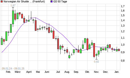 Mit dem Anstieg auf 0,95 EUR hat die Norwegian Air Shuttle ASA-Aktie am 08.01.2025 die 50-Tage-Linie nach oben gekreuzt.