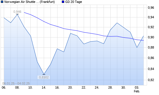 Mit dem Rücksetzer auf 0,88 EUR hat die Norwegian Air Shuttle ASA-Aktie am 03.02.2025 die 20-Tage-Linie nach unten gekreuzt.