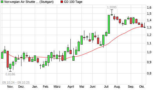 Mit dem Anstieg auf 1,33 EUR hat die Norwegian Air Shuttle-Aktie am 08.10.2025 die 100-Tage-Linie nach oben gekreuzt.