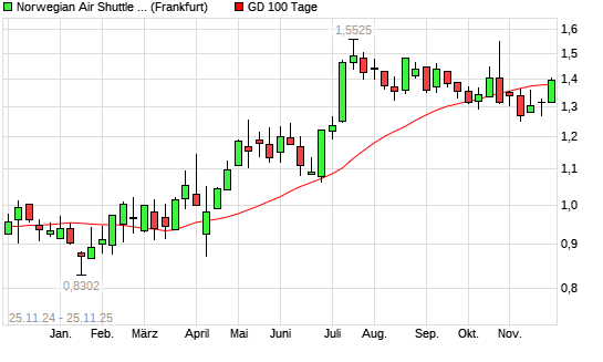 Mit dem Anstieg auf 1,38 EUR hat die Norwegian Air Shuttle-Aktie am 24.11.2025 die 100-Tage-Linie nach oben gekreuzt.