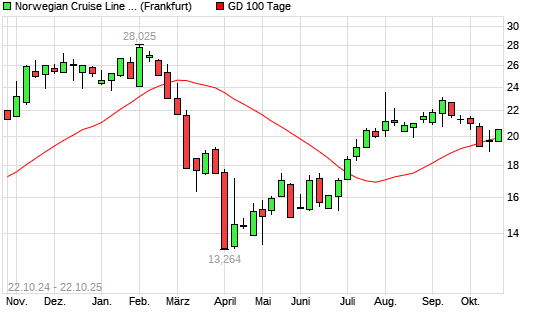 Mit dem Anstieg auf 20,52 EUR hat die Norwegian Cruise Line-Aktie am 21.10.2025 die 100-Tage-Linie nach oben gekreuzt.