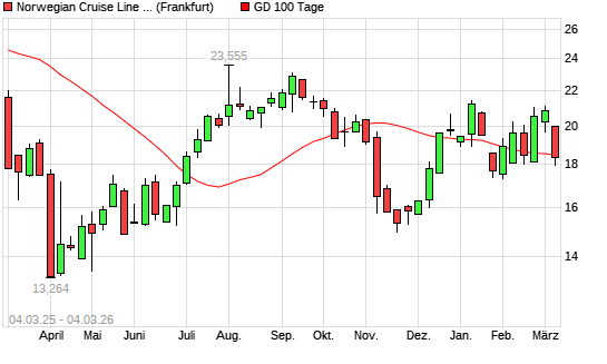 Mit dem Rücksetzer auf 18,28 EUR hat die Norwegian Cruise Line-Aktie am 03.03.2026 die 100-Tage-Linie nach unten gekreuzt.