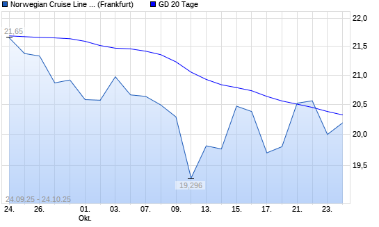 Mit dem Rücksetzer auf 20,00 EUR hat die Norwegian Cruise Line-Aktie am 23.10.2025 die 20-Tage-Linie nach unten gekreuzt.