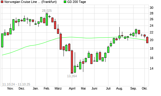 Mit dem Rücksetzer auf 19,30 EUR hat die Norwegian Cruise Line-Aktie am 10.10.2025 die 200-Tage-Linie nach unten gekreuzt.