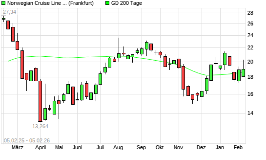 Mit dem Rücksetzer auf 18,36 EUR hat die Norwegian Cruise Line-Aktie am 04.02.2026 die 200-Tage-Linie nach unten gekreuzt.