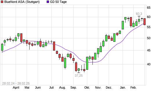 Mit dem Rücksetzer auf 56,60 EUR hat die Norwegian Energy Company-Aktie am 27.02.2025 die 50-Tage-Linie nach unten gekreuzt.