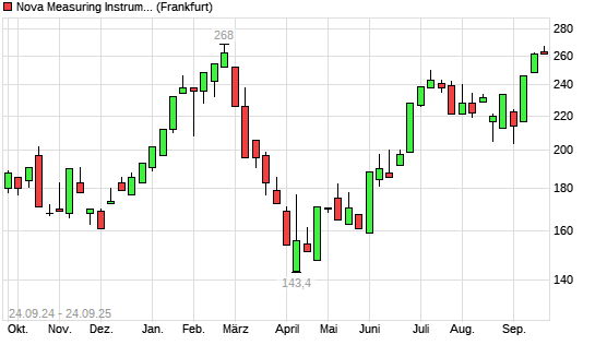 Mit dem Anstieg auf 267,00 EUR hat die Nova Measuring-Aktie (ISIN IL0010845571) am 23.09.2025 ein neues 6-Monats-Hoch erreicht und damit den Kurs vom 22.09.2025 eingestellt.