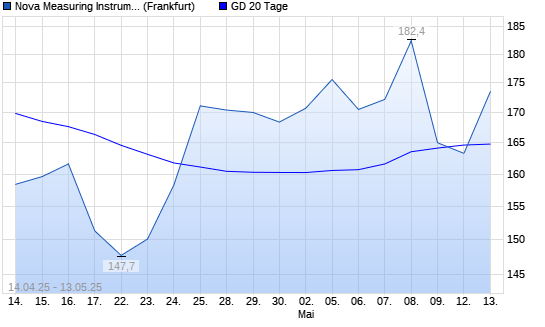 Mit dem Rücksetzer auf 163,30 EUR hat die Nova Measuring-Aktie am 12.05.2025 die 20-Tage-Linie nach unten gekreuzt.