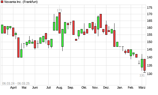 Mit dem Rücksetzer auf 131,00 EUR hat die Novanta-Aktie (ISIN CA67000B1040) am 05.03.2025 ein neues 12-Monats-Tief erreicht und damit den Kurs vom 25.02.2025 eingestellt.