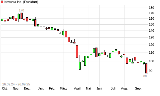 Mit dem Rücksetzer auf 89,50 EUR hat die Novanta-Aktie (ISIN CA67000B1040) am 25.09.2025 ein neues 3-Jahres-Tief erreicht und damit den Kurs vom 09.04.2025 eingestellt.
