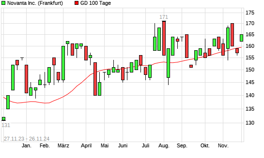 Mit dem Anstieg auf 162,00 EUR hat die Novanta-Aktie am 25.11.2024 die 100-Tage-Linie nach oben gekreuzt.