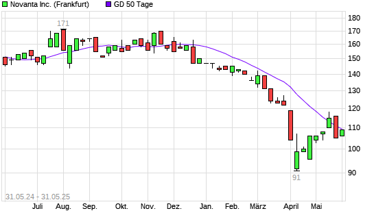 Mit dem Anstieg auf 109,00 EUR hat die Novanta-Aktie am 30.05.2025 die 50-Tage-Linie nach oben gekreuzt.