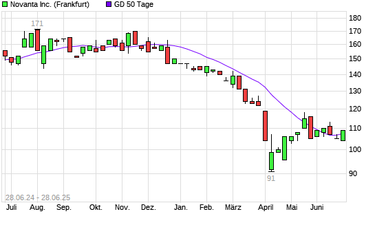 Mit dem Anstieg auf 109,00 EUR hat die Novanta-Aktie am 27.06.2025 die 50-Tage-Linie nach oben gekreuzt.
