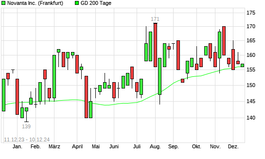 Mit dem Rücksetzer auf 156,00 EUR hat die Novanta-Aktie am 09.12.2024 die 200-Tage-Linie nach unten gekreuzt.