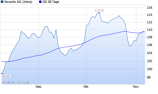 Mit dem Rücksetzer auf 109,40 EUR hat die Novartis-Aktie am 06.11.2025 die 38-Tage-Linie nach unten gekreuzt.