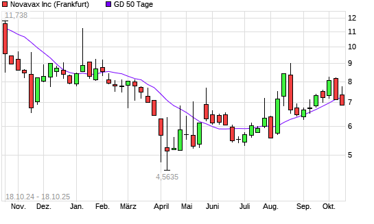Mit dem Rücksetzer auf 6,89 EUR hat die Novavax-Aktie am 17.10.2025 die 50-Tage-Linie nach unten gekreuzt.