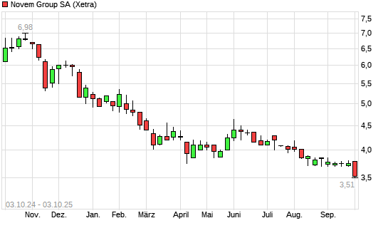 Mit dem Rücksetzer auf 3,43 EUR hat die Novem Group-Aktie (ISIN LU2356314745) am 02.10.2025 ein neues All-Time-Low erreicht und damit den Kurs vom 19.09.2025 eingestellt.