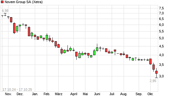 Mit dem Rücksetzer auf 2,93 EUR hat die Novem Group-Aktie (ISIN LU2356314745) am 16.10.2025 ein neues All-Time-Low erreicht und damit den Kurs vom 15.10.2025 eingestellt.
