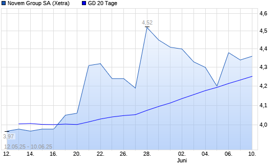 Mit dem Anstieg auf 4,25 EUR hat die Novem Group-Aktie am 09.06.2025 die 20-Tage-Linie nach oben gekreuzt.
