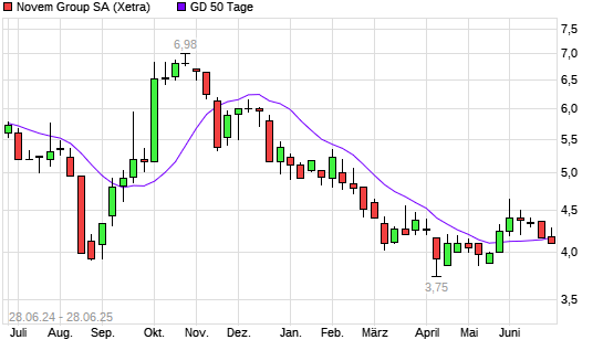 Mit dem Anstieg auf 4,13 EUR hat die Novem Group-Aktie am 27.06.2025 die 50-Tage-Linie nach oben gekreuzt.