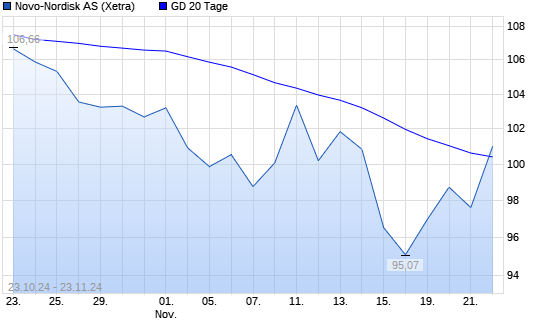 Mit dem Anstieg auf 101,68 EUR hat die Novo Nordisk-Aktie am 22.11.2024 die 20-Tage-Linie nach oben gekreuzt.