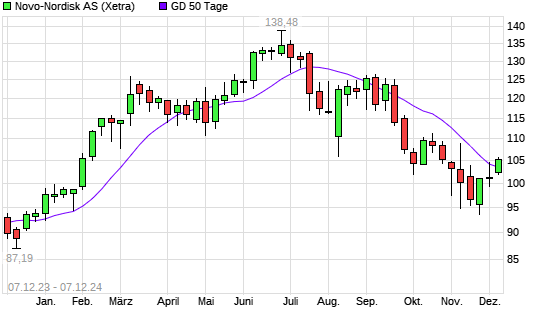 Mit dem Anstieg auf 105,20 EUR hat die Novo Nordisk-Aktie am 06.12.2024 die 50-Tage-Linie nach oben gekreuzt.