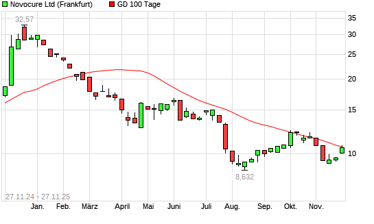 Mit dem Anstieg auf 10,80 EUR hat die Novocure-Aktie am 26.11.2025 die 100-Tage-Linie nach oben gekreuzt.