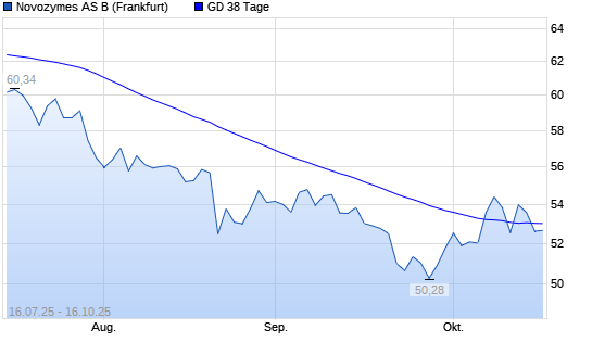 Mit dem Rücksetzer auf 52,62 EUR hat die Novonesis-Aktie am 15.10.2025 die 38-Tage-Linie nach unten gekreuzt.