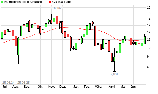 Mit dem Anstieg auf 10,78 EUR hat die Nu Holdings-Aktie am 24.06.2025 die 100-Tage-Linie nach oben gekreuzt.