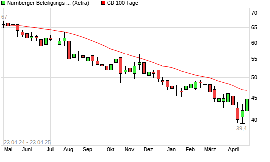 Mit dem Anstieg auf 46,40 EUR hat die Nürnberger Beteiligungs AG-Aktie am 22.04.2025 die 100-Tage-Linie nach oben gekreuzt.