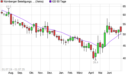 Mit dem Anstieg auf 51,80 EUR hat die Nürnberger Beteiligungs AG-Aktie am 30.06.2025 die 50-Tage-Linie nach oben gekreuzt.