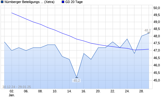 Mit dem Rücksetzer auf 46,20 EUR hat die Nürnberger Beteiligungs AG-Aktie am 28.01.2025 die 20-Tage-Linie nach unten gekreuzt.